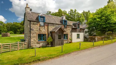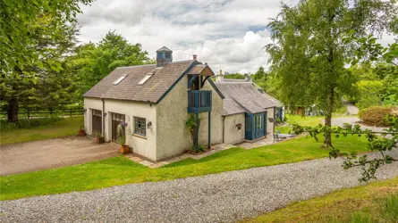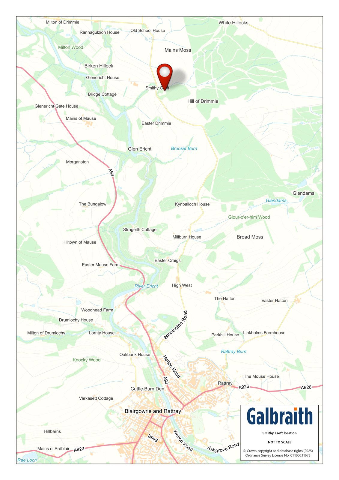 SITUATION Smithy Croft lies approximately 3 miles to the north of the town of Blairgowrie in the county of Perthshire and enjoys a superb rural position commanding outstanding views over the surrounding countryside. Blairgowrie provides comprehensive day to day facilities including a secondary school, supermarkets, independent retailers, a medical centre and restaurants. The city of Perth lies approximately 20 miles to the south and provides an excellent range of services and facilities including national retailers, theatre, concert hall, banks and railway station. Dundee is 23 miles to the south east and provides equally good facilities as well as two universities and an airport with regular flights to London.Perthshire is renowned for its wealth of recreational opportunities on the doorstep. The many hills and glens offer a wealth of walking and mountain biking routes whilst winter sports can be enjoyed at Glenshee Ski Centre which lies about 90 minutes journey north. For the golfer, there are numerous courses within a comfortable distance including the world renowned Rosemount golf course at Blairgowrie.DESCRIPTION Smithy Croft is a delightful traditional house sitting within a lovely garden and enjoying a beautiful setting with super views of the surrounding countryside and hills beyond. It has a part harled, part cedar clad and part original stonework exterior lying under a slate roof with double glazing throughout and is comprised of a traditional house with an impressive carpenter oak extension. Upon entering the charm and character of the house are evident with well proportioned rooms offering light and bright accommodation and superb reception spaces. The welcoming entrance hall leads to the suburb sitting room which has feature oak beams, an impressive fireplace and dual aspect views with ample natural light, this is a great space for entertaining guests and accommodating family life. The cosy kitchen has traditional charm with an Aga and an excellent range of wall and base units. Off the kitchen is the dining room which continues through to a snug which is a lovely peaceful space that could be a fourth bedroom if desired. The ground floor accommodation is completed by a utility room and a WC.From the hall, a staircase leads up to the principle suite which has a generous master bedroom, a mezzanine and a bathroom with a bath and a shower. The other bedrooms are reached by a staircase in the original part of the house and are generously proportioned with great storage and benefit from a bathroom and a pretty mezzanine which has lovely views of the gardens. ACCOMMODATION Ground Floor: Entrance Hall, Kitchen, Sitting Room, Dining Room, Snug, Utility, WC, Porch. First Floor: Principle Bedroom Suite with Double Bedroom and Bathroom, 2 Double Bedrooms, Bathroom, Mezzanine Seating Area.GARDEN AND GROUNDSSmithy Croft sits within extensive grounds of some 22 acres. To the rear of the house is a gravel drive with a turning circle beyond which is well maintained lawns with mature shrubs providing structure and colour. Immediately off the entrance hall is the sheltered courtyard garden which provides a delightful space to sit and enjoy the afternoon sun and the peace of the surroundings. Off the sitting room is a further seating area within a lovely, curved wall which is ideal for lunchtime dining. Beyond the lawns is a delightful wooded area with a mix of native species that provides wonderful amenity ground and habitat for the local wildlife. Within the woodland is open areas of grazing ground which have great potential to be used for ponies or other smallholding activities. At the rear of the property is about 20 acres of woodland which was planted approximately 30 years ago, this is mostly coniferous with some deciduous species. Smithy Croft has a generous double garage with ample room for two cars as well has plenty storage space. The garage also has a superb workshop space above the parking area which has a charming door onto a small veranda and provides the potential for use as a home office or playroom. The garage is accessed directly from the driveway with a door leading to the courtyard. Within the garden there is a timber garden shed which is sued for storing garden equipment and a further wooden shed with a hardcore base which is ideal for storing machinery.