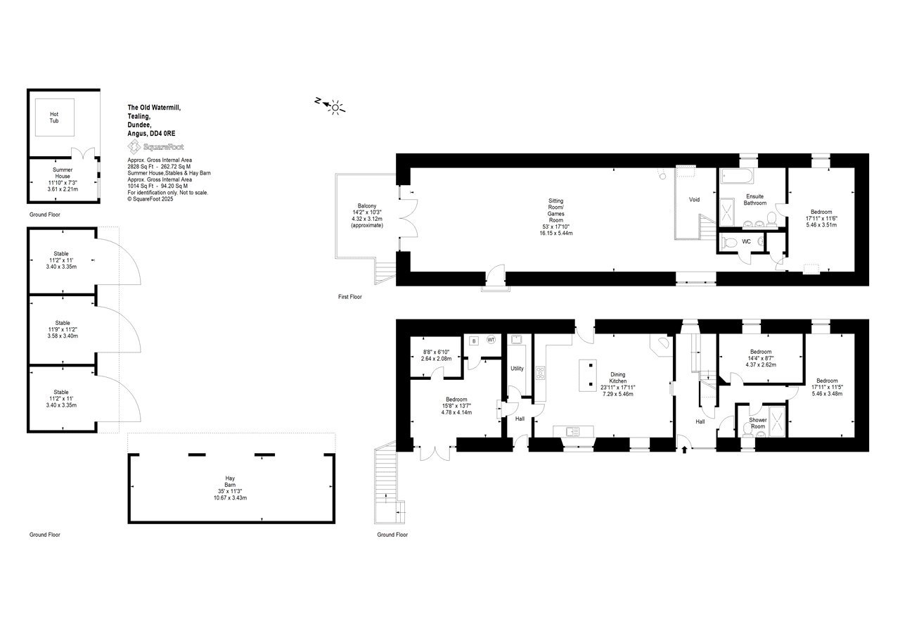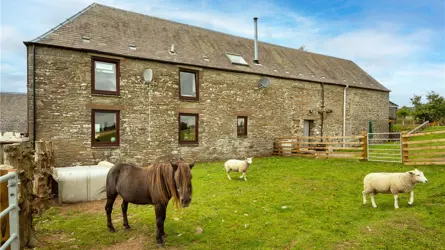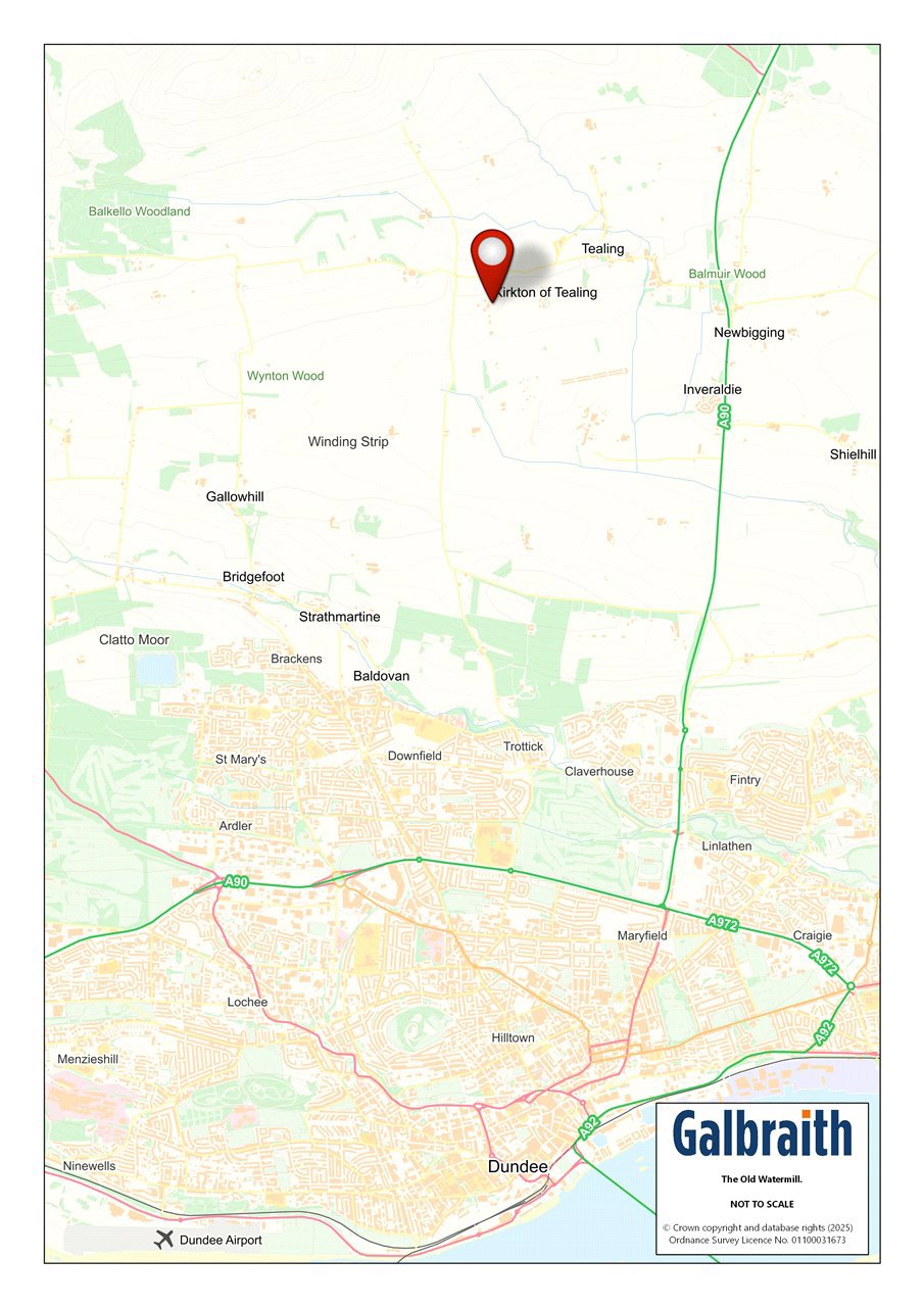 SITUATION The Old Watermill is situated in a rural location about a mile west of the hamlet of Tealing, surrounded by the beautiful Angus countryside. There is excellent access on to the A90 with Dundee city centre being a mere 15-minute drive away. The City of Dundee offers a wide array of services and amenities including local and national retailers, banking and leisure facilities, 2 Universities, cinemas, bus and train stations as well as an airport with regular flights to London. Both Edinburgh and Aberdeen can be reached in over an hour by car and host a further range of amenities including International Airports. Angus offers a breadth of recreational opportunities and The Old Waterhouse is ideally placed to make the most this vibrant county has to offer. The nearby Angus Glens provide a myriad of walking and cycling trails and a number of Munros all within easy reach. There are many golf courses within easy reach including courses in Dundee, Kirriemuir and Forfar. DESCRIPTION The old Watermill is a most attractive contemporary barn conversion sitting within a well tended garden with great views over the surrounding countryside. The house has a stone exterior lying under a slate roof with double glazing throughout.The house provides a wealth of bright and spacious accommodation over two floors. The kitchen/dining/living room benefits from an excellent range of wall and base units, integrated appliances and a woodburning stove, it enjoys dual aspect views over the garden and paddocks and is a superb family space. The ground floor has two double bedrooms and a shower room and there is a further double bedroom with an ensuite bathroom that is currently used for dog grooming. The first floor opens up into a most wonderful sitting room/games room which is ideal for entertaining guests as well as providing a fantastic family space. It benefits from a balcony via French doors as well as a Juliette balcony providing ample light and enjoys spectacular views over the paddocks and surrounding countryside. The first floor is completed by the principal bedroom with an ensuite as well as a WC.ACCOMMODATION Ground Floor: Front Hall, Kitchen/Dining/Living Room, Utility Room/Larder, Double Bedroom with Ensuite, 2 Further Double Bedrooms, Shower Room, Storage Cupboards.First Floor: Sitting Room / Games Room, Principal Bedroom with Ensuite, WC.GARDEN AND GROUNDSThe Old Watermill sits within delightful and well-maintained grounds that provide an attractive backdrop with great views over the surrounding countryside. A good-sized paved parking area provides ample parking as well as space for a newly built summer house with a hot tub. Wrapping around the rear of the house is a lovely garden, mostly laid to lawn with mature trees and hedging providing structure and privacy. there is a useful garage at the top of the garden as well as a summerhouse. Adjacent to the house is a spacious yard with two newly built timber stable blocks, the stables have concrete floors and can be split into stables or kept open for storage. The yard and stables benefit from their own access off the hared access track. The yard and stables are complimented by approximately 4.58 acres which is split into a number of good-sized paddocks and is ideal for horses as well as potentially for smallholding use or extended gardens.