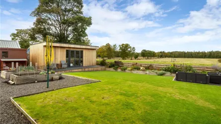 SITUATION Pine View lies in the heart of Ardler, a pretty village in the county of Perthshire and enjoys a superb position with lovely views of the surrounding countryside. Ardler is a superb village with a well-regarded dining pub and views of the Sidlaw Hills to the south and the Grampian Hills to the north. Day to day facilities can be found at the nearby village of Meigle, located approximately 2 miles east, and in the town of Coupar Angus to the west, which both benefit from a primary school, church, village shop and selection of cafes. The city of Dundee is the closest city and is situated about 13 miles to the south and provides an excellent range of facilities and services including two universities, shopping centres, a railway station and an airport. The city of Perth is equally convenient and is situated about 16 miles to the south west and provides an excellent range of services and facilities including national retailers, theatre, concert hall, banks and a Railway station. Edinburgh and Glasgow can both be reached in over one hour by car, with their international airports and vibrant city amenities.Perthshire is renowned for its wealth of recreational opportunities on the doorstep. The many hills and glens offer a wealth of walking and mountain biking routes, while winter sports can be enjoyed at Glenshee Ski Centre, located approximately 50 minutes north by car. For the golfer, there are numerous courses within a comfortable distance, including Blairgowrie, Alyth and multiple in an around Perth.DESCRIPTION Pine View is an attractive contemporary home set over one floor providing lateral living throughout and has been finished to a high standard with quality fixtures and fittings throughout. The entrance vestibule and hall leads directly to the reception spaces and accommodation. The reception space is a key feature of the house which is ideally suited for flexibility, entertaining and family living. The dual aspect kitchen / dining / sitting room has doors leading into the garden with a double height ceiling benefiting from a lot of natural light and wonderful garden views. A formal sitting room lies adjacent and has been tastefully decorated to provide a cosy reception space. The ground floor is complete with the principal bedroom with an ensuite, a double guest bedroom with an ensuite, an additional 2 double bedrooms and a family bathroom. There is also a useful utility room. ACCOMMODATION Ground Floor: Entrance Vestibule, Hall, Sitting Room, Kitchen/Dining Room/Sitting Room, Utility Room, Principal Bedroom with En Suite, Double Bedroom with En Suite, 2 Double bedrooms, Family Bathroom. GARDEN Pine View sits in the centre of a lovely plot and is pleasantly set back from the main road. To the front is a generous gravel parking area with ample room for multiple cars. The lawn is well maintained and a hedge has been planted providing privacy. To the rear is a delightful garden which has been designed for the property, there is a lovely lawn with raised borders around the edge and a pretty sun deck with superb views over the surrounding countryside. Sitting within the garden is also the garden room, a great space which has a myriad of possible uses and has been built to a very high standard. Fully insulated with big windows overlooking the garden it is a super addition to the property.