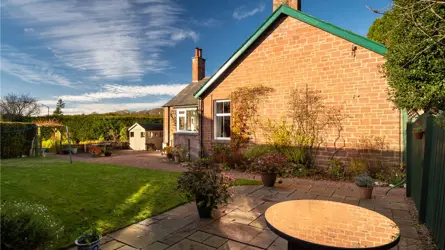 - Well tended garden with lawn, borders and vegetable patch