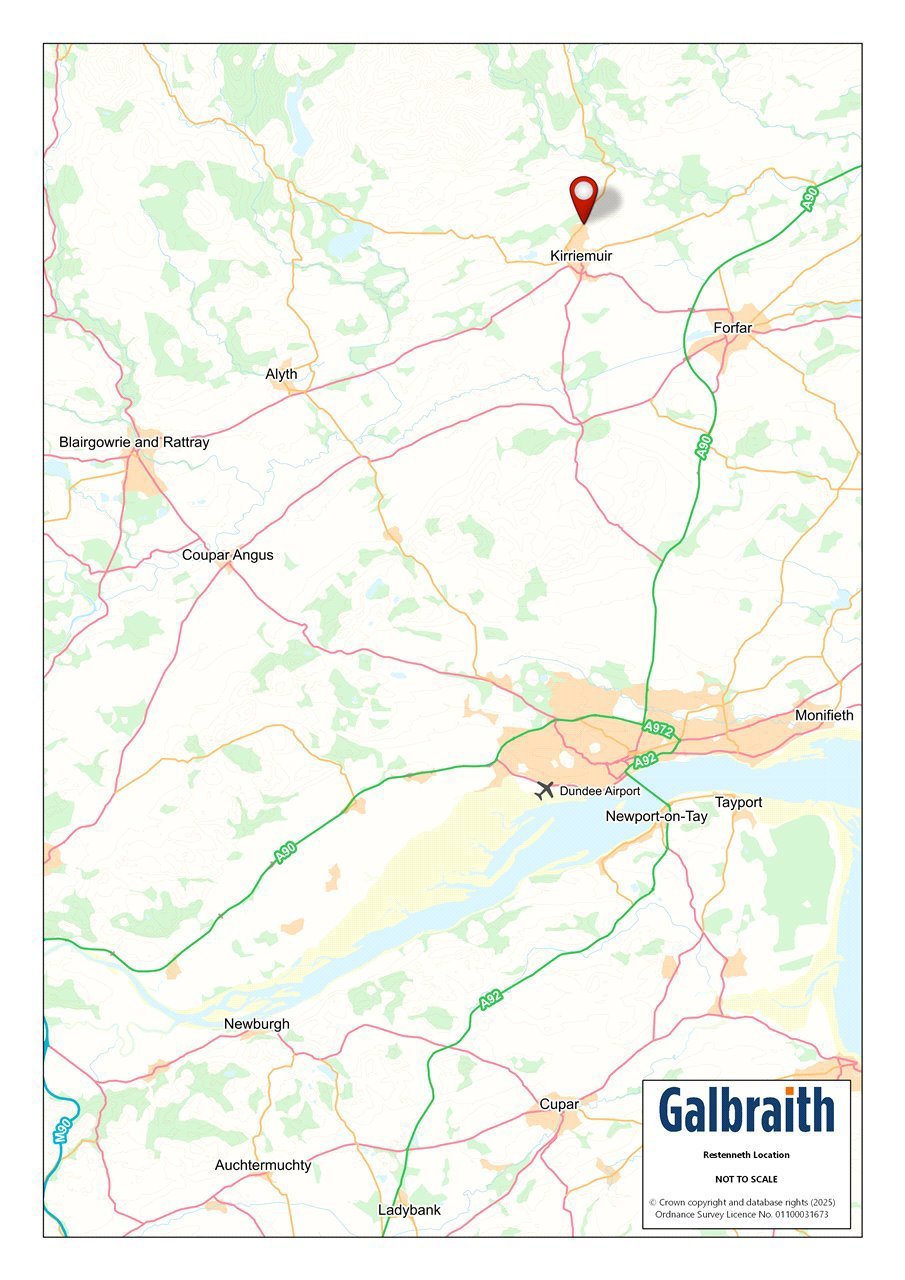 SITUATIONRestenneth lies on the edge of the much sought after town of Kirriemuir in the county of Angus. Kirriemuir provides a superb range of day to day amenities including a supermarket, primary and secondary schooling, medical, dental and veterinary practices, as well as cafes, pubs and restaurants. Forfar, about 7 miles south east, and Blairgowrie, 15 miles south west both are within easy reach and provide a greater selection of comprehensive facilities. Dundee is the closest city lying 19 miles to the south and provides two universities, an airport with daily flights to London and an extensive range of national retailers together with the V & A Museum, Olympia swimming pool and Discovery Point where RRS Discovery is on permanent display. Perth, known as the “Fair City”, can be reached in about an hour’s journey by car to the south west with national retailers, banks restaurants, concert hall, theatre, cinema, railway station, leisure centre and ice rink. Angus offers a breadth of recreational opportunities and Restenneth is ideally placed to make the most this vibrant county has to offer. The nearby Angus Glens provide a myriad of walking and cycling trails and a number of Munros all within easy reach. For the golfer, the Kirriemuir Golf Course is within walking distance and courses can also be found in Forfar, Alyth and Blairgowrie.DESCRIPTIONRestenneth is a most attractive traditional property of sandstone construction under a pitched slate roof and lies in a quiet scenic setting on the outskirts of Kirriemuir. Restenneth has been in its current ownership and used as a family home for nearly 30 years with period features throughout such as wooden panelled doors, cornicing, woodburning stove and open fire in the dining room. On entering, the entrance vestibule, with stained glass window above allowing ample light, and a spacious entrance hall leads to the flexible reception spaces. The lounge benefits from a large bay window with attractive sash-and-case frames. The adjacent dining room is of a generous size making this the perfect space to host friends and family. The open plan kitchen / dining / sitting room is the heart of the home with woodburning stove making this a very cosy and welcoming room. The ground floor is complete with two bedrooms, one with a cupboard and sink, as well as a family bathroom and utility room with access into the garden. A staircase leads to the first floor which comprises two generous bedrooms both with integrated wardrobes, a shower room and an attic room which offers exceptional storage space.ACCOMMODATIONGround Floor: Entrance Vestibule, Entrance Hall, Sitting Room, Dining Room, Kitchen / Sitting / Dining Area, Utility Room, Bedroom, Principal Bedroom with Sink, Family Bathroom.First Floor: Shower Room, 2 Bedrooms, Attic Room.GARDENRestenneth sits within an established garden which wraps around the property resulting in a most attractive backdrop. The front and rear gardens are laid to lawn complemented with well-tended borders which results in superb structure and interest throughout most of the year. In addition, there is a vegetable patch to the west, a patio area perfect for outdoor dining as well as a potting shed and timber garden shed. A tarmac driveway leads to a parking area to the east and there is a detached single garage to the west of the property which can be accessed via the adjacent Cortachy Road. Attached to the garage is a coal/wood store and an additional shed providing excellent storage and space for avariety of uses.