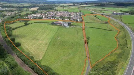 LOCATIONDalry is a historic conservation town located approximately 25 miles to the south-west of Glasgow and 9 miles to the north of Irvine. The town benefits from excellent communication links via the A737 leading to Irvine 9 miles to the south and Glasgow Airport 17 miles to the north-east, where it joins the M8 motorway leading to Glasgow and Edinburgh. The town benefits from a newly completed bypass and Dalry Train Station is located immediately to the west of the subjects and provides frequent services to Glasgow Central Station (27 minutes) and Ayr (26 minutes) enabling an excellent opportunity for commuters. The town benefits good local amenities including bank, supermarkets and a wide range of shops. There are two primary schools and secondary schooling is available at nearby Garnock Academy in Kilbirnie, which has recently been redevelopment, and St Matthew’s Academy in Saltcoats. Dalry is a popular and growing town with an active and thriving local community engaged in a range of activities and has a population of circa 5,250 (2022) and a population of 51,619 within a 5-mile radius.DESCRIPTIONThe site is located to the south-east side of Dalry and extends to approximately 18.73 hectares (46.28 acres). The site is generally orientated north to south and comprises undulating farmland currently down to grass. An indicative concept masterplan has been prepared and shows a mixture of residential housing, community areas, and public open space. The site is bounded to the north by existing housing to the west by the railway and, to east by rolling farmland. The Dalry bypass lies immediately to the east of the site with farmland beyond. The masterplan has been designed to take advantage of the southerly and westerly aspects of the site providing the potential for views over the surrounding countryside.Blairland Farmhouse, steading and paddock are centrally located within the land and comprise a 3/4 bedroom house with 1 bedroom annex extending in total to approximately 2,800 sqft (261 sq.m). The main agricultural building lies to the north of the farmhouse and extends to approximately 33,000 sq.ft (3,072 sq.m). There is a further detached shed to the west extending to approximately 2,970 sq.ft (276 sq/m). The farmhouse is in poor condition and requires total refurbishment. The agricultural buildings are also in poor condition and may require to be replaced.PLANNINGThe site is designated within the North Ayrshire Council Local Development Plan, adopted in November 2019, as a site for residential development with an indicative capacity of up to 200 houses under ref: NA1113. It should be noted that there may be scope to increase unit numbers on site, subject to obtaining the necessary consents.Planning Permission in Principle for residential development was granted by North Ayrshire Council on 3 June 2015, reference N/15/00103/PPPM, subject to a number of conditions. There is no Section 75 agreement required and full planning documentation is contained within the Technical Information Pack.The planning applications were extended by variation to conditions in 2018 and 2021, under ref: 18/00328/PPM and 21/00214/PP and most recently in May 2024 under ref: N/24/00307/PP.Full planning information can also be obtained by entering the planning reference numbers in North Ayrshire Council’s Planning Portalhttp://www.eplanning.north-ayrshire.gov.uk/OnlinePlanning/search.do?action=simpleSERVICES AND ACCESSThere are mains supplies of water, electricity, gas, telecommunication and drainage within close proximity of the site. It is anticipated that new supplies will be required to be brought to the site. The location of existing services is available in the technical information pack together with further information relating to potential connection points. However, any intending purchasers are advised to make their own enquiries with the relevant Utility Company/Authority.It is expected that a new access road will be required for any future large-scale development which will run from Blair Road on the northeastern boundary of the development land. A private access road owned by Transport Scotland runs through the land on a north-south axis and provides access to Blairland Farmhouse, steading and land. It should be noted that there is an arrangement with Transport Scotland for the grant of rights to lay services over and through the Transport Scotland access.METHOD OF SALEThe subjects are offered for sale as a whole or in 2 Lots.Lot 1: Blairland Farmhouse, Steading and PaddockLot 2: Development LandFor the development land, a deposit of £25,000 will be paid on the conclusion of missives, the deposit will be non-refundable but deductible from the purchase price.Interested parties will be notified of a closing date and requested to submit a heads of terms offer. Galbraith will issue the required form of offer to interested parties on notification of the closing date. The form of offer will include the minimum information required and timescales.We recommend that interested parties note their interest in the site in order to be kept informed of any closing date and to receive any additional pertinent information.