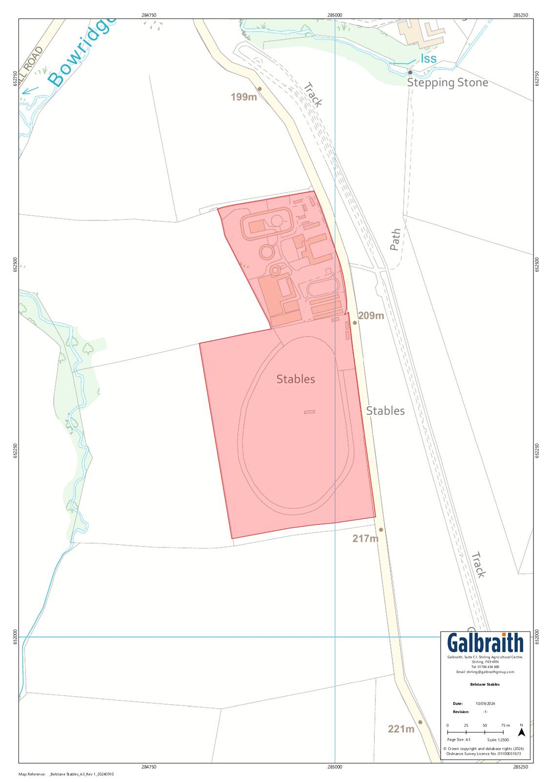 SITUATIONBelstane Racing Stables are located approximately 1 mile north of the town of Carluke in South Lanarkshire. The property sits wholly to the west of Belstane Road and is surrounded by land utilised for agriculture.DESCRIPTIONBelstane Racing Stables extends to 7.56 Ha (18.68 Acres) or thereby and comprises, Belstane Farmhouse, North and South wing staff accommodation with additional office & reception area, 5 static caravans, 127 stables which are spread across multiple blocks of both timber and modern constructions, indoor and outdoor gallops, indoor and outdoor arena, 2 exercising systems and land which can be utilised for grazing or mowing.For the avoidance of doubt, the land and gallops on the eastern side of Belstane Road are not included in the sale.METHOD OF SALEBelstane Racing Stables is offered for sale as a whole.FARMHOUSEBelstane farmhouse is of a stone construction under a pitched tiled roof providing accommodation over two levels. The property comprises:Ground Floor: Utility Room, Cloakroom, Kitchen, Large Hallway including w/c, office and sitting room.First Floor: 3 Double Bedrooms, Family Bathroom with both a bath and a shower, large hallway with two lining cupboards and a master bedroom with ensuite and walk in wardrobe.The property benefits from mains water, mains electricity, private septic tank and gas central heating.The property is generally in good condition, with modern fixtures and fittings.STAFF ACCOMMODATION- SOUTH WINGThe staff accommodation to the south wing is of a stone construction under a pitched tiled roof providing accommodation over a single level comprising:Reception space with shower room, office, store room, w/c, 4 double bedrooms, kitchen and boot room. This property has previously been used for staff accommodation.The property benefits from mains water, a shared private septic tank, mains electricity and gas heating.STAFF ACCOMMODATION- NORTH WINGThe staff accommodation to the north wing is of a stone construction under a pitched tiled roof providing accommodation over a singular level comprising:Sitting room, kitchen, bathroom with both a bath and shower and 2 double bedrooms.The property benefits from mains water, a shared private septic tank, mains electricity and gas heating.EQUESTRIAN & AGRICULTURAL BUILDINGS:Courtyard Stables adjoining Farmhouse (15.5m x 8.0m) Of mixed stone and concrete block construction under a pitched tiled roof with concrete floors. This block provides 8 back to back (3.65m x 3.75m) boxes.Stable Block 1 (15m x 8.33m) Of concrete block construction under a pitched box profile roof with a concrete floor. Within this there are 8 (3.78m x 2.9m) movable Monarch boxes with sliding doors.Timber Stable Block 2 (22m x 3.47m) Timber stable block providing 6 timber stables with concrete floors under a PVC roof. The block comprises 6 (3.47m x 3.48m) stables.Stable Block 3 (20m x 14.4m) of timber construction with concrete block walls under a flat box profile sheeted roof with a concrete floor. This block is located within the centre of the indoor gallops and comprises 12 (3.95m x 3.23m) movable boxes.Indoor Gallops Of timber construction under a box profile sheeted roof with box profile walls and an earth floor.Horse Walker There are 2 covered motorised horse walkers:Monarch System- 10 spacesClaydon System- 6 spacesPlease note that there are no warranties available in respect of the horse walkers.Traditional Stable YardFour-sided courtyard providing 20 stables, of block construction, under a pitched tiled roof with concrete floors and a tarmacadam centre yard area. The stable yard comprises:19no (3.6m x3.6m) stables1 corner (5.4m x 3.6m) stableDouble tack room – 3.65m x 2.7m x 3.65m x 2.4mTack 1- 5.4m x 3.6mTack 2- 5.3m x 3.6mAll of the stables are fitted with IAE doors with anti-weave grilles.Stable Block 4 (18.2m x 14.2m)Of steel portal frame construction under a corrugated fibre cement roof with a concrete floor with mixed tin and Ventair side cladding. The blocks holds 7no (3.4m x 3.2m) stables.Stable Block 5 (41.1m x 10.5m)Of steel portal frame construction under a corrugated fibre cement roof with a concrete floor. The shed comprises 20 (3.4m x 3.4m) stables of concrete block walls with facings and a further 2no (3.6m x 3m) pony boxes.Storage Shed Lean-to (16.1m x 4.3m)Of timber frame construction under a box profile roof with box profile cladding and a earth floor.Timber Stable Block 6This block is made up of 3 sets of timber stable blocks amounting to 44no individual boxes measuring 3.5m x 3.65m each. Of timber construction under a corrugated fibre roof with a concrete floor.Open Arena (54m x 17.8m)Of steel portal frame construction under a pitched box profile roof with concrete panel walls, box profile cladding and a concrete floor. The shed benefits from a sliding door.Workshop (24.7m x 12.4m)Of steel portal frame construction under a box profile roof with box profile walls and a concrete floor, the shed is equipped with an electric roller door.Outdoor Arena (20m x 40m) Enclosed with timber post fencing and laid with shredded felt surface.THE LANDThe Land at Belstane Stables extends to 5.36 ha (13.24 ac) or thereby of permanent pasture. The land is in a ring-fenced block and is classified as Grade 3(2) by the James Hutton Institute. The land sits between 195m and 205m above sea level and is generally west facing in aspect. The land has been recently utilised for the grazing of horses and is fenced externally by post and wire fencing with an internal circular timber fence and sand gallops. There are 2 timber field shelters.