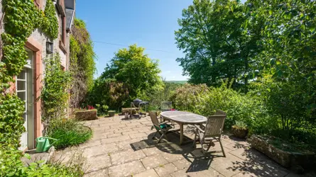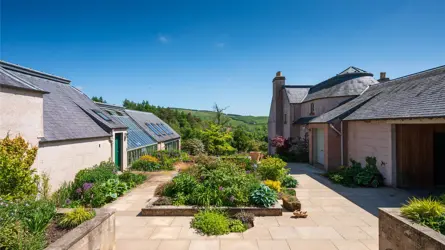- Attractive courtyard with modern glass house, garden room, further ancillary garden stores and an office