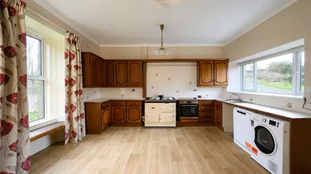 SITUATION Kirknewton mains farmhouse is set within a working arable farm and used to serve as the farmhouse for the local farmer. For commuters the local train stations is minutes away and there are direct road links to Edinburgh and Livingston.Schooling is available at Kirknewton Primary and West Calder High School. Private schooling is available at the nearby Clifton Hall School as well as more options in Edinburgh.There is a broad range of recreational facilities including equestrian and countryside parks providing attractive country walks. Leisure facilities are available in at Dalmahoy Country Club and Xcite East Calder. There are also a variety of quality golf courses nearby.DESCRIPTION Formerly a farmhouse now a small holding in need of some modernisation. Opportunities and possibilities are varied to turn this property into a rural family home that is close to local amenities. Spread across two floors the property offers flexible accommodation ideal for the modern family.ACCOMMODATION Ground Floor: Kitchen, sitting room, double bedroom, and shower room.First Floor: Two double bedrooms and large storage cupboard.GARDEN (AND GROUNDS) Large garden mostly laid to lawn, surrounded by a well maintained fencing, the garden also features various areas of planting and mature trees. Beyond the garden the property benefits from approximately 6.25 acres of land as well as a large Nissen Hut.
