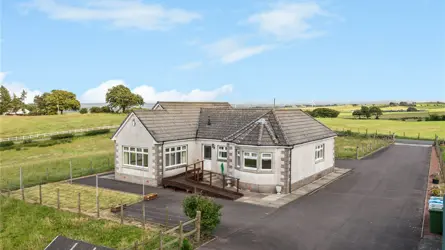 ** CLOSING DATE SET FOR THURSDAY 28TH AUGUST AT 12 NOON **SITUATIONBurn Park is located within South Lanarkshire in a picturesque countryside location near the town of Hamilton (4.7 miles). Hamilton is a bustling town with a number of useful local amenities including supermarkets, car garages, primary school, secondary school, restaurants, pubs, parks and rugby/football clubs. The largest city in Scotland, the city of Glasgow, is within a 40 minute drive or could be accessed via train or bus links. Glasgow offers an enormous range of amenities including, retail parks, sporting and recreational facilities, supermarkets, secondary education and universities.The property is in an ideal location for a commuter with railway stations within a 20 minute drive at Hamilton and East Kilbride providing regular rail connections to Glasgow and beyond. The property is within easy access to the M74 motorway at Hamilton and Larkhall providing links to the North and South of the country. Glasgow Airport is just 25 miles away providing daily domestic and international flights to a number of locations.DESCRIPTIONThe property is a detached villa sitting in an elevated position overlooking the surrounding countryside and rolling hills. Burn Park benefits from a private driveway off a minor public road allowing both privacy and security, the property has been well maintained and boasts a friendly and welcoming ambience.Through the front door you are greeted with a welcoming hallway with storage space for shoes and jackets, the hallway gives you access to all the rooms of the property. On your left through the front door is a well – sized living room with a large bay window allowing lots of natural light. From the living room you can access the dining room through large double doors making it a perfect place to entertain and host. The kitchen is to the back of the property and benefits from its own access to the garden area at the back. It is fitted with a mixture of wall and base units, double oven, sink, hob, and space for white goods. All three of the bedrooms are doubles, with the main bedroom and the second bedroom both having built in wardrobes. The family bathroom is a 4 piece white suite with separate bath and walk in shower. The hallway offers excellent storage with 3 large cupboards, it also gives access to the floored loft.ACCOMMODATIONGround Floor: Kitchen, living room, dining room, sunroom, master bedroom, bedroom, family bathroom.GARDEN AND GROUNDSBurn Park Fam benefits from its own private drive and large area of tarmac surrounding the property providing ample parking and direct access to the outbuilding in the grounds. There is a small section of lawn within the fenced area with space for seating and a washing line. The property comes with a paddock which surrounds the property and extends to approximately 1.81 Ha (4.47 Acres) in total. It is currently down to grazing ground but could be used to extend the garden or as a further development opportunity subject to planning consents.