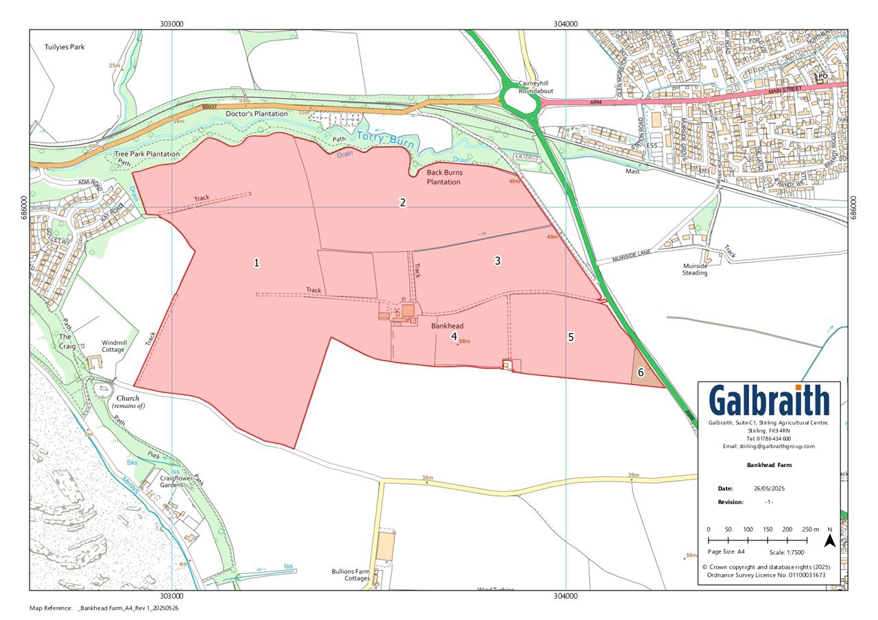SITUATIONBankhead Farm is an attractive ring-fenced mixed arable and grassland unit situated in a desirable and accessible part of West Fife near the village of Cairneyhill. The village is within a 5 minutes’ drive and offers a range of local amenities including shops, garden centre, primary school, restaurants, cafes and car garages. Continuing through Cairneyhill you can be in the large town of Dunfermline within 10 minutes. Dunfermline offers a much wider range of amenities including leisure facilities, train station, local secondary school and a number of supermarkets including an Aldi, Asda and Tesco Extra. The city of Stirling and city of Edinburgh are both within a 40 minute drive respectively.Commuters to Edinburgh can travel with ease via train from Dunfermline to Edinburgh City Centre with a travel time of around 35-40 minutes. The city of Edinburgh boasts a substantial range of amenities including retail centres, leisure and business facilities, as well as many historic monuments and landmarks. Edinburgh provides unlimited travel options with regular mainline rail connections and the airport providing domestic and international flights daily.This area of Fife is well served by a wide variety of agricultural contractors, merchants and suppliers, with regular livestock sales held in Stirling at the United Auctions and Caledonian Marts. Traditionally this part of Fife is well known for its fertile land, capable of producing high yields of an extensive range of crops. The area would be well suited to intensive cropping and livestock.METHOD OF SALEBankhead Farm is offered for sale as a whole.FARMING SYSTEMThe farm has been in the vendors family for three generations with the farming system being centred on a mixed arable and livestock enterprise. The current farming system is centred around Spring Barley which is sold for malting although historically the land has produced high yields of oats, wheat and winter barley. The current owners of the farm run a winter farm produce shop, they have grown a vast variety of crops on the farm to supply the shop, with supplement produce being sourced from food markets in Glasgow.The farm is also home to a herd of around 20 suckler cows which are grazed in the summer on grassland and housed in a cattle court through the winter months.DESCRIPTIONBankhead Farm is located within a highly sought after and accessible location within West Fife and is accessed via a private road leading from the A985. The private road leads you up to the steading with the farmhouse sitting centrally within the holding boasting outstanding views across the Firth of Forth and the three bridges. The compact steading benefits from several traditional and more modern farm buildings that could have a variety of uses. The farm presents a productive arable unit extending to 63.06 Ha (155.82 Acres) in total including roads, yards and buildings with the agricultural land extending to 61.84 Ha (152.80 AcresFarmhouseThe farmhouse is a traditional 5-bedroom stone built farmhouse with rendered stone walls under a slate roof. It is situated in the heart of the farm with incredible views of the surrounding countryside and the Firth of the Forth. The property has been modified and occupied as two separate units but has useful interlinking door which connects the two units together. The accommodation is spacious throughout and would provide a fantastic family home benefiting from a large mature garden towards the rear of the property which is mostly laid to lawn. The accommodation and room dimensions are set out in more detail in the floor plan contained within this brochure.Farm BuildingsBankhead Farm is well equipped with a useful range of farm buildings which lie to the north and west of the farmhouse and there is a sizeable yard area adjacent to the buildings. The farm buildings comprise:Grain/Potato Store (20.16m x 11.45m)Of brick construction under a pitched corrugated fibre roof with a concrete floor and main sliding door.Cattle Court (30m x 20m)Of steel portal frame construction under a pitched corrugated fibre roof with concrete block walls, ventair side cladding and a concrete floor. There is a raised central feed passage splitting the shed with cattle housing on one side and general storage and the farm shop on the other side.BothyTowards the immediate west of the farmhouse lies an unoccupied bothy which would require complete renovation, although could potentially provide a development opportunity for a second dwelling, or short term let subject to obtaining any necessary consents. The bothy is set over a single story and is of traditional stone construction under a pitched tile roof with timber framed single glazed windows. The accommodation included a kitchen, bedroom, bathroom and sitting room.There is a building at the western side of the steading which has been condemned due to structural issues – this building should not be entered during any inspection.The LandBankhead Farm extends to approximately 63.06 Ha (155.82 Acres) in total including roads, yards and buildings. The land has been classified as being Grade 2 and Grade 3 by the James Hutton Institute and is well suited to growing a wide variety of high yielding crops. The most recent cropping is a wide range of vegetable crops and spring barely, although other cereal crops have been grown in the past. One of the fields is currently down to grass and utilised for the grazing of cattle and forage production. A detailed cropping history schedule is contained at the end of this brochure. The land is generally of a southernly aspect, rising overall from approximately 27m above sea level at the southwest corner to approximately 55m above sea level at its highest point near the steading. The fields are of a good practical size and are mainly accessed via internal farm tracks.IACSAll the farmland is registered for IACS purposes and the farm code is 401/0019. All of the land is classified as Region 1 for BPS purposes.N