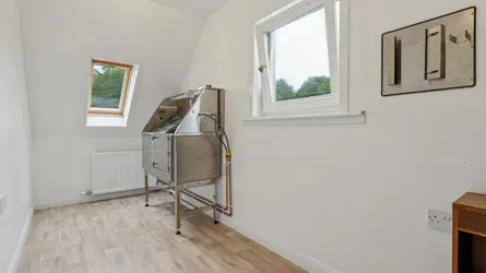 SITUATIONForrestfield House is situated about 3 miles to the east of the village of Caldercruix in rural North Lanarkshire, some 6 miles east of Airdrie and approximately 24 miles east of Glasgow. The property is very well located benefitting from easy access to the surrounding villages and onto main A-class roads providing useful access to the M8 and M80 motorways.Caldercruix provides local day to day amenities including two local stores and a pharmacy. The nearby town of Airdrie offers a wider range of facilities including a cinema, supermarkets, an excellent range of shops and sports/recreational facilities.Forrestfield is within easy commuting distance of the City of Glasgow, Scotland’s largest City, being within about 20 miles to the west of the property. Glasgow offers world renowned shopping outlets, businesses and entertainment facilities. Glasgow Airport is within 45 minutes (30 miles) drive and Edinburgh Airport is within 30 minutes (23 miles) both offer regular flights to London and a wide range of international destinations. The nearby railway stations of Caldercruix (about 3 miles) and Airdrie (about 6 miles) offer regular train services to and from Edinburgh Waverley, Glasgow Queen Street and beyond.DESCRIPTIONForrestfield House is a detached villa, set within private grounds just off a minor public road. The accommodation is spread across two levels and benefits from a large double garage that can accommodate several cars. Through the front door you go into a hallway with stair leading to the first floor. From the hallway you enter the main living space with 3 well-sized bedrooms, one with en-suite, family bathroom, large living room with a traditional log burner and a spacious kitchen/dining room. The kitchen has a utility room with additional access to the garden area. Upstairs there is an grooming room, large sitting area with kitchenette, WC, and a double bedroom. A unique opportunity for someone to run a successful business using the well-equipped outbuilding that was refurbished to a very high specification for professional dog breeding by the vendor.ACCOMMODATIONGround Floor: Lounge, kitchen/dining room, utility, bedroom one, ensuite, bedroom two, bedroom three, family bathroom, study, puppy rooms one and two.First Floor: Grooming room, sitting room with kitchenette, shower room, bedroom four.GARDEN AND GROUNDSThe property benefits from its own enclosed garden with access onto the surrounding grounds. The grounds extend to approximately 3.2 acres which is made up of a mix of pasture, amenity woodland, and garden. The boundary is secured by fencing. The grounds could be used for various pursuits including grazing, dog training, or equestrian purposes.FLOOD RISKFlood maps of the area can be viewed at https://map.sepa.org.uk/floodmaps/FloodRisk/SearchPOST CODEML6 7RYWHAT3WORDSTo find this property location to within 3 metres, download and use What3Words and enter the following 3 words: https://what3words.com/workroom.wolves.toneOUTBUILDINGThe property includes a large outbuilding that has been recently refurbished as a state of the art dog breeding facility. All surfaces are impervious and easily cleaned for the highest standards of hygiene. A large entrance area provides storage for outdoor clothing and shoes, and leads to a very flexible large main area with an open-plan kitchen including washing machine, tumble dryer, dishwasher, fridge and sink with hot and cold water. One door leads to a secure, covered patio area and another to a large grass exercise area. There are 10 additional individual suites for dogs/puppies. The main features include:• Seamless resin floor throughout• Underfloor heating throughout, powered by an efficient air-to-water heat pump• Every room has UPVC doors and is individually thermostatically controlled• Thermoformed PVC wall-cladding• Mechanical ventilation heat recovery (MVHR) system simultaneously supplies fresh air and extracts stale air throughout• CCTV coverage in every room• Fire alarm systemSOLICITORSClancys - 20, 22 Torphichen Street, Edinburgh, EH3 8JBLOCAL AUTHORITYNorth Lanarkshire Council, Civic Centre, Windmillhill St, Motherwell ML1 1ABFIXTURES AND FITTINGSNo items are included unless specifically mentioned in these particulars.VIEWINGSStrictly by appointment with the Selling Agents.ANTI MONEY LAUNDERING (AML) REGULATIONSPlease note that under the 2017 AML regulations we are legally required to carry out money laundering checks against purchasers. Upon verbal acceptance of an offer, we require to identify the purchaser for Anti-Money Laundering purposes. Our service provider ‘First AML’ will contact the purchaser to gather the required identification documents. An information sheet is available from the selling agent on request. We are not able to enter a business relationship with a purchaser until they have been identifiedFailure to provide required identification may result in an offer not being considered.HEALTH & SAFETYAppropriate caution should be exercised at all times during inspection particularly in reference to any livestock present and working machinery and equipment on the property.