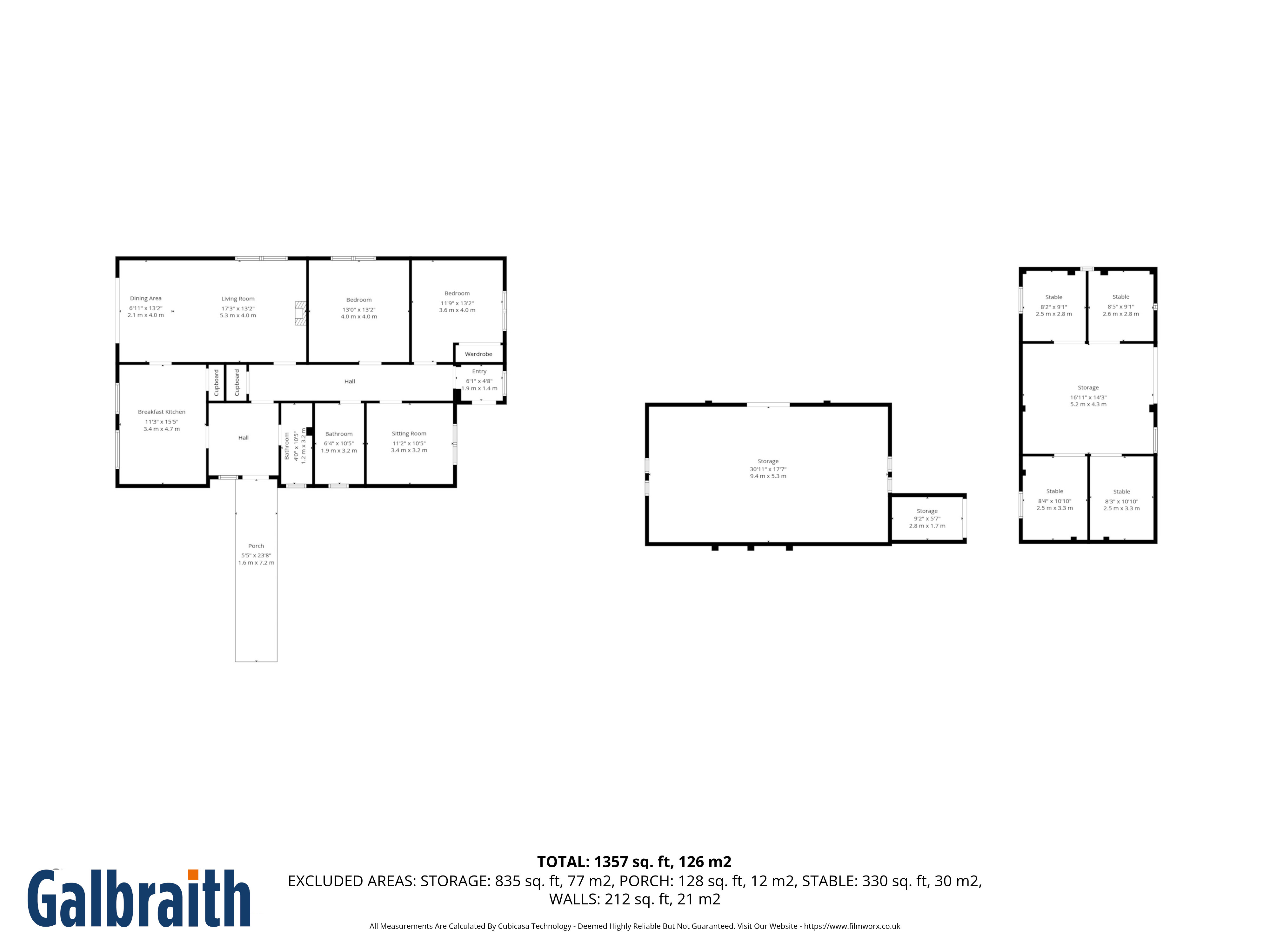 - Two detached outbuildings with stables