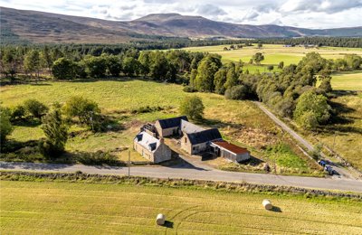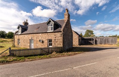 Charming stone cottage in the heart of Royal Deeside and the Cairngorms National Park, with exceptional potential for development with around 6 acres included.