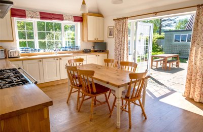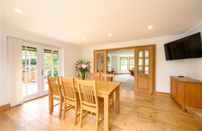 Extended country property in a sought-after area. Sitting room, kitchen/breakfast room, dining room/bedroom 4, 3 bedrooms, bathroom, shower room. Attached garage and carport with log store. Garden shed. Useful loft/studio. Generous parking area. Lovely south facing garden with terrace.