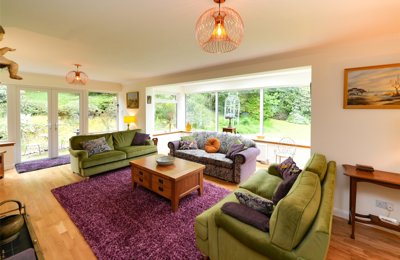 A stylish and spacious split level family home set in spectacular wooded grounds. 3 reception rooms. 4 bedrooms. Study. Garage 2 Driveways. Extensive mature garden grounds with numerous specimen trees. 1.4 acres