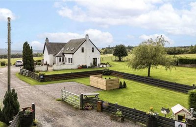 A striking rural property in a beautiful, secluded setting. With far reaching views towards the Cromarty Firth and generous established garden. Useful outbuildings including double garage, greenhouse and garden studio.