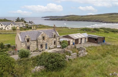 A modernised, decrofted house with useful range of outbuildings, stabling and registered croft in a stunning coastal setting.