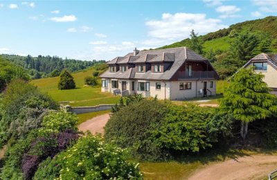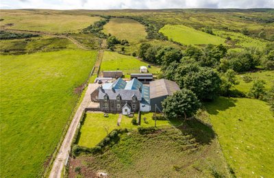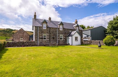 A traditional 5 bedroom farmhouse with two further cottages. 3 Reception Rooms. Large Garden. Spectacular views. Steading. Approx 24.65 acres (9.97 hectares).