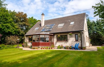 A modern country house in a peaceful setting with spectacular views over the Moray Firth. Garage with workshop and games room above. About 4.52 acres.