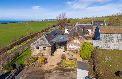A highly energy efficient barn conversion in an elevated position with superb views. 2 Reception Rooms. 3 Bedrooms (one en suite). Dining Kitchen. Bathroom. Attached stone byre with planning permission. Energy efficient solar panels and heat pump. Mature garden. Beautiful country and sea views.