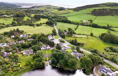 A fully renovated, B listed farmhouse with spectacular coastal view and expansive grounds including walled garden, young cider apple orchard and grazing.