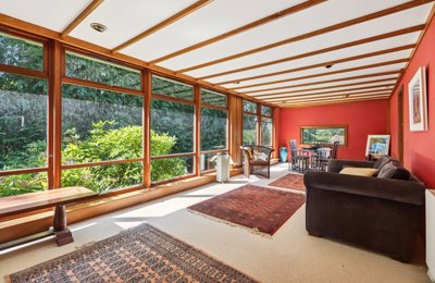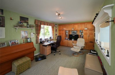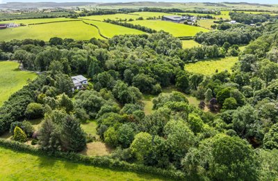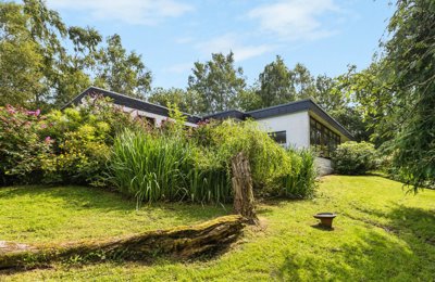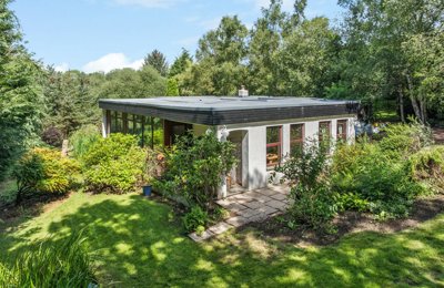 An enchanting 1960s detached house set within its own private wooded grounds. About 4.89 acres. Open plan kitchen/dining room, living room, sitting room, 3 bedrooms (master en suite), bathroom, office. Individually designed and built. Fishing rights.